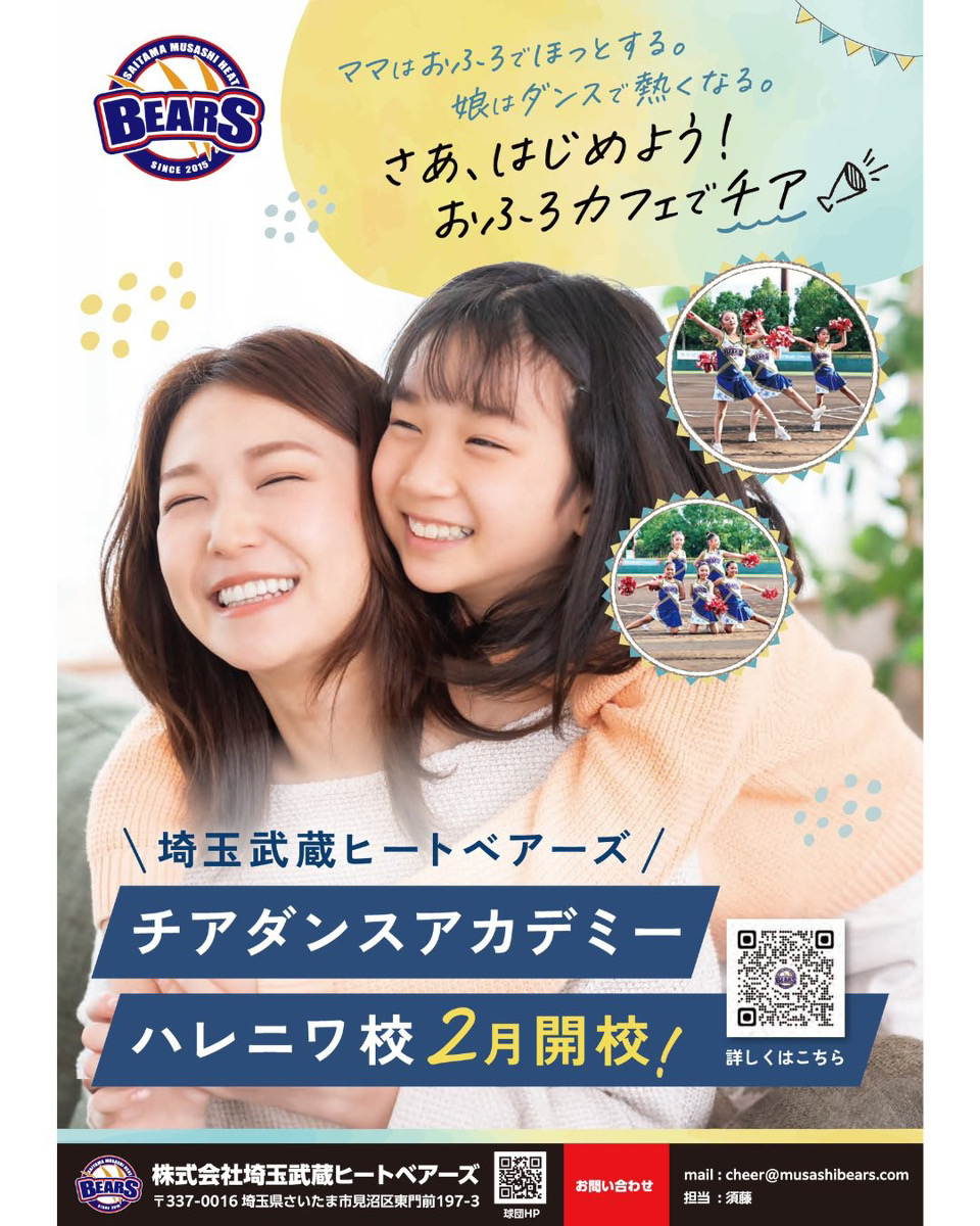 2月より、ハレニワの湯にて埼玉武蔵ヒートベアーズチアダンスアカデミーが開校します。